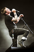 En arrivant devant la Grande Scène, noire de monde, on se rend compte que la côte de popularité de The Offspring est au beau fixe. Pourtant, les vétérans du punk ne sont pas franchement excitants musicalement parlant depuis la fin des années 90. Ils font d'ailleurs bien leur âge : les crânes se sont dégarnis et les ventres ont légèrement gonflé. Les Californiens alignent leurs tubes passés ("Come Out And Play", "All I Want", "Pretty Fly (For A White Guy)", "Hit That", "The Kids Aren't Alright"), chacun étant accueili par une ovation. Le public, venu en masse, est à fond. Il connaît les refrains par coeur, s'époumone. De notre côté, on regarde ça comme on reverrait un pote de collège perdu de vue : amusé, mais pas franchement convaincu de l'utilité de la chose. On pourrait ajouter que les américains ont l'air de se prendre au sérieux, n'adressent pas un mot au public, que Dexter Hollan chante régulièrement faux et que, cerise sur le gâteau, il nous a littéralement assommé avec un titre au piano absolument calamiteux.