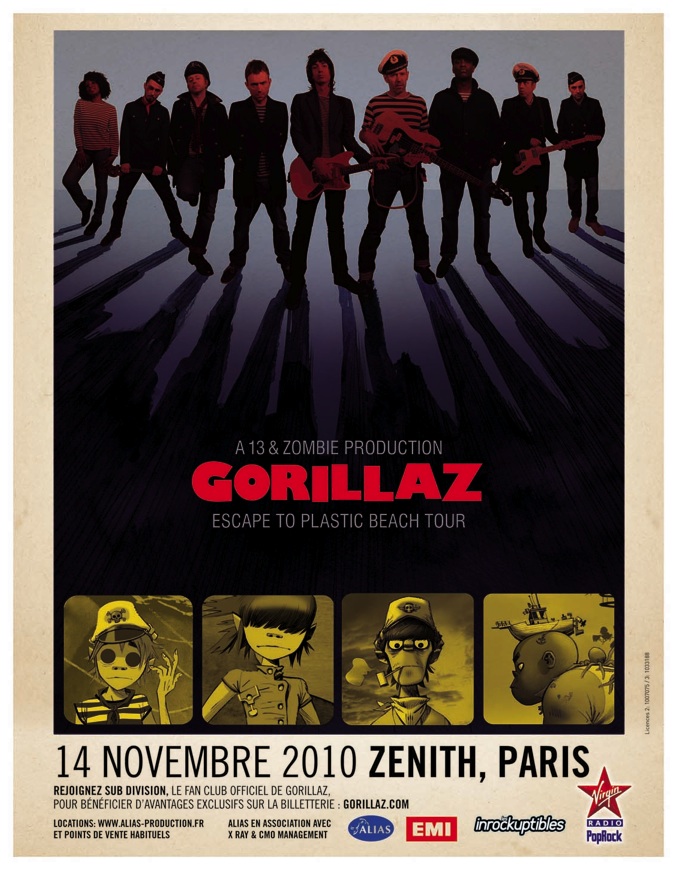 Voilà huit mois déjà que notre mp3 s'est échoué sur Plastic Beach, dernier disque en date de Gorillaz. Si notre avis reste le même sur cette livraison en-deçà de nos espérances, le collectif de Damon Albarn dispose de suffisamment d'armes pour nous attirer dans ses filets. D'autant plus que les compte-rendus des concerts britanniques de Gorillaz nous ont sacrément mis l'eau à la bouche. Malgré le prix du billet fort dissuasif, il est donc hors de question de rater l'événement, et l'envie prend le dessus sur la raison. Bien nous en a pris : Damon Albarn et sa troupe n'ont pas failli à leur réputation, livrant une performance époustouflante.
