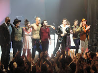 autrement plus convaincante que sur disque, -M- nous propose une dernière expérience de communion : prendre la main de son voisin et crier tous en même temps. Ça a l'air très bête décrit comme ça, mais le bonheur de partager est si évident chez -M- que tout ça est très naturel et procure une joie intense.
