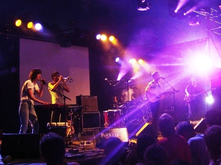 Fanfarlo. Les quelques titres entendus font penser à un Arcade Fire de poche. Sur scène, un trio guitare-basse-batterie accompagné par un violon / ukulele et un clavier / trompette. Le groupe maîtrise ses crescendos et termine son set par un dernier titre effréné qui fait une nouvelle fois songer au groupe de Win Butler.