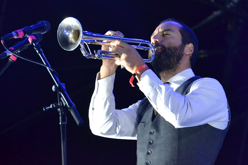 Le public se manifeste bruyamment à chaque début de titre puis écoute religieusement la suite des morceaux, lesquels ressemblent note pour note à l'original. Et c'est là où le bas blesse : les chansons sont très bien interprétées, mais on ne perçoit pas de variation par rapport aux versions des albums. Reste que, bien servi par ses cinq musiciens (2 cuivres, 1 accordéon, 1 batterie et 1 conterbasse), Zach Condon remporte les suffrages grâce, notamment, à une voix qui charrie son lot d'émotions.